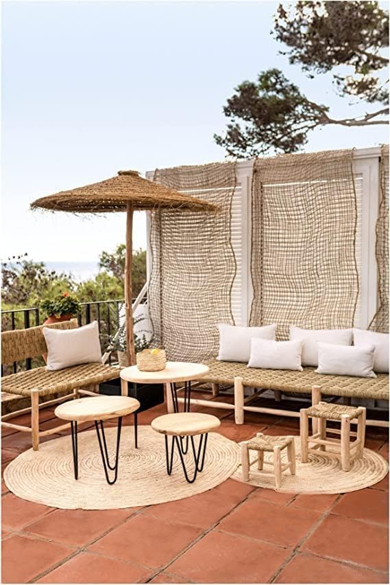 Generic - سجادة دائرية مصنوعة يدويًا بإطار نخيل طبيعي لديكور المطبخ المنزلي (80 سم)، بيج