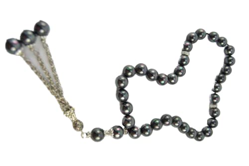 Other - مسبحة من البورنيت الطبيعي واللؤلؤ المستخرج من المياه العذبة، أسود