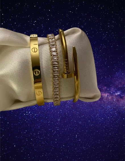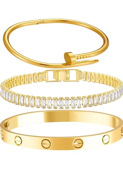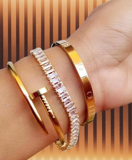 Generic - مجموعة أساور من الاستالس النقي الطبيعي سوار الذهب لايغير لون جودة عالية، للنساء