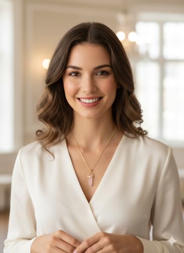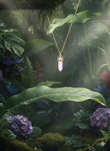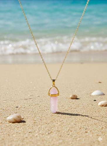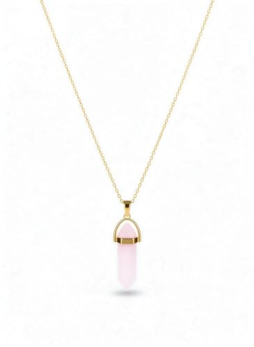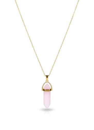 Generic - سلسلة ذهبية بدلاية عمود كريستالي انيق من الكوارتز الوردي الطبيعي | من الاستانلس ستيل المقاوم للصدأ | حجر الحب والهدوء | إكسسوار أنيق لمحبي الأحجار الكريمة والطاقة الإيجابية