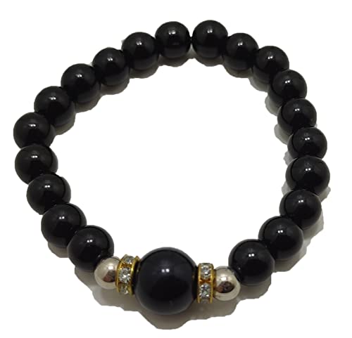 Other - سوار مرصع باحجار الاونيكس الدائرية الطبيعية باللون الاسود، للرجال
