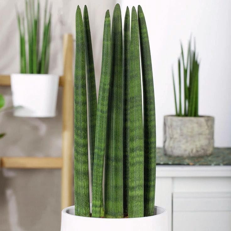 - نبات داخلي: صنسيفيريا طبيعية في وعاء أبيض أنيق، مثالي للديكور الداخلي المعاصر