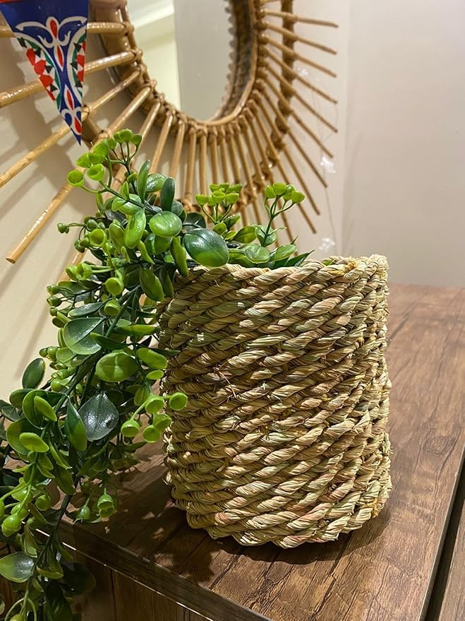 - تصميم طبيعي: سلة أعشاب بحرية مصنوعة يدويًا بقطر 15 سم، مثالية للنباتات الداخلية والتنظيم المنزلي