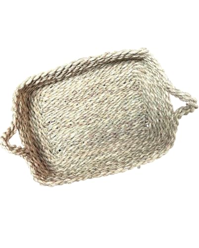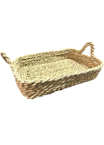 Generic - سلة تخزين من الأعشاب البحرية الطبيعية مع مقابض، صينية مستطيلة مصنوعة يدويًا، 40 × 30 × 6 سم، منظم ديكوري