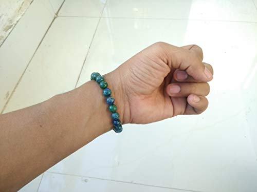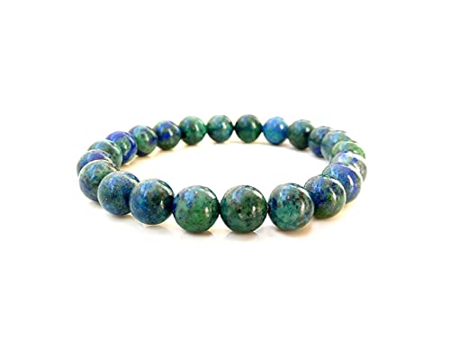generic - سوار من الاحجار الكريمة الطبيعية شبه الثمينة من الخرز الكريستالي الدائري السائب للرجال والنساء. 8 ملم، كريستال، ازوريت