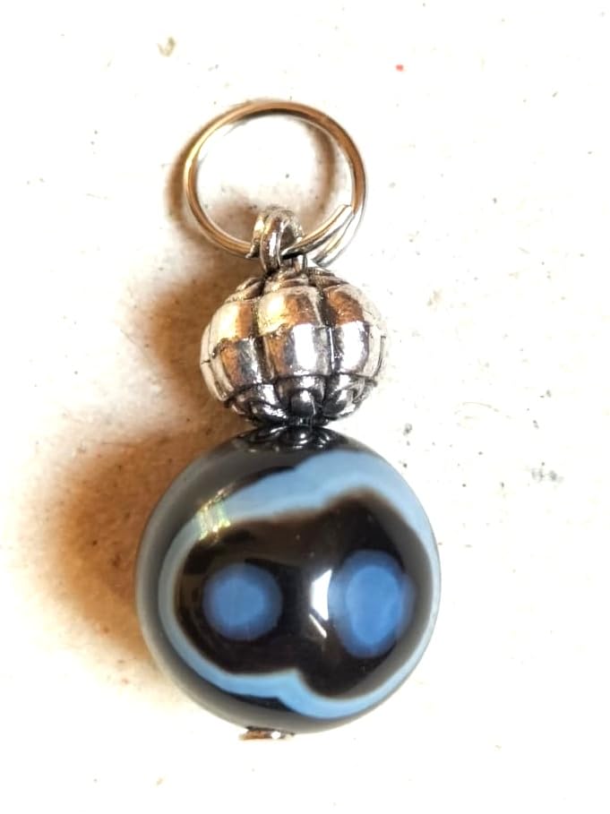 Generic - دلاية سلسلة خرزة من حجر العقيق السليماني الطبيعي شكل عين مزدوجة - رائعة في حالة صد الحسد والعين والاستفادة من طاقة الاحجار الطبيعية