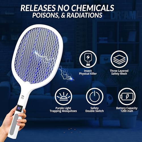 Natural Solution - صاعق حشرات، مضرب ذباب كهربائي للاستخدام داخل المنزل وخارجه من ناتشورال سولوشن، قطعتان