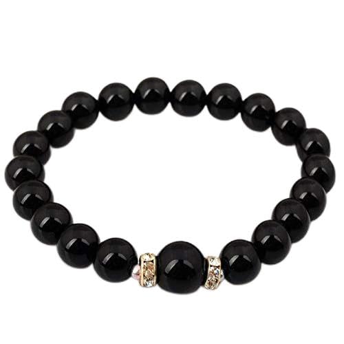 Other - سوار من حجر العقيق الاسود الطبيعي خرز دائري - ST1232, حجر, بدون أحجار، للذكر