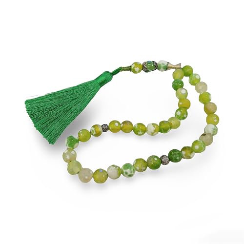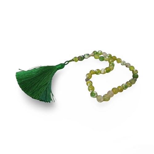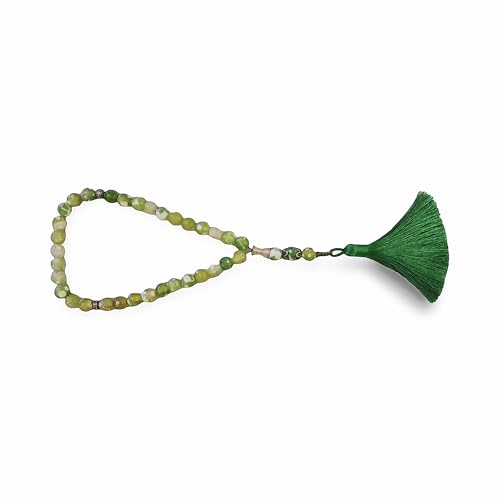 Generic - مسبحة من الحجر الطبيعي الأخضر واليشم، سلسلة خرز مع شرابة خضراء للتأمل والصلاة