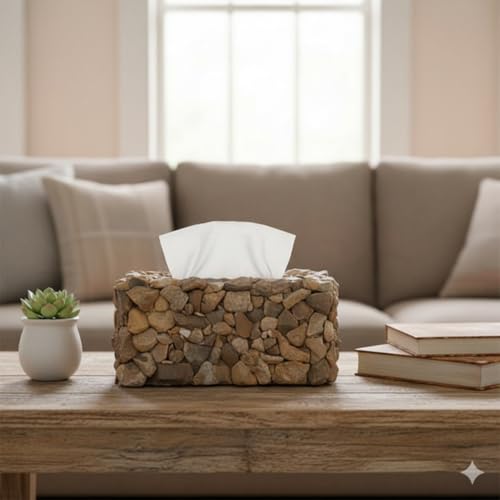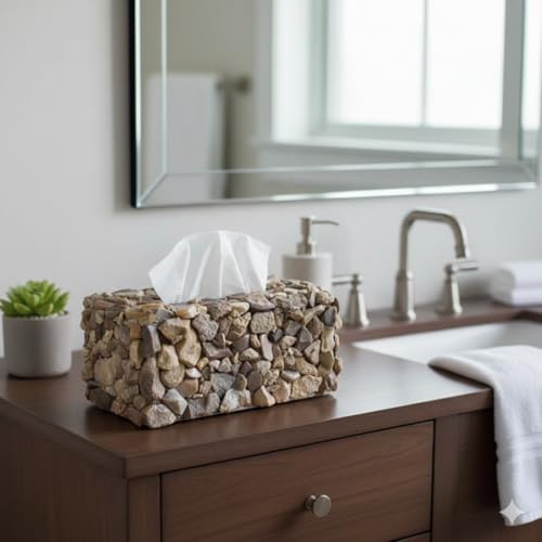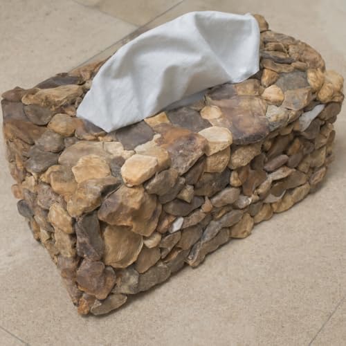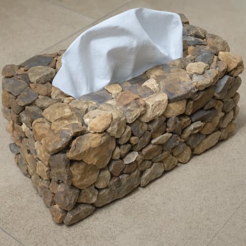 Generic - علبة مناديل من الحجر الطبيعي، حامل مناديل الوجه، تصميم ريفي، ألوان بني ورمادي طبيعية، 26x15x11 سم
