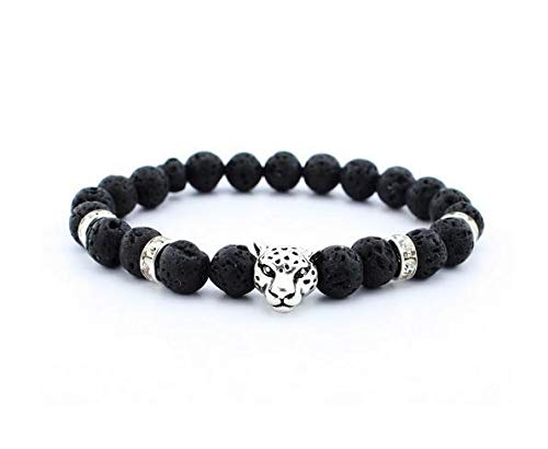 Other - اسوارة بركانية طبيعية مع وجه نمر فضي - مقاس 20، للجنسين