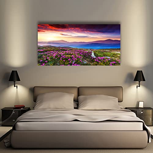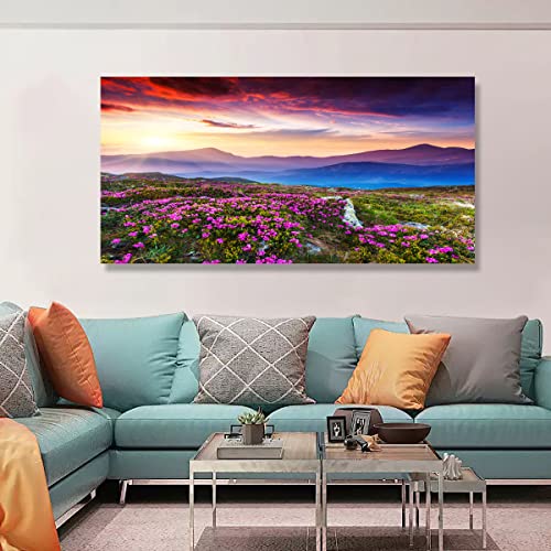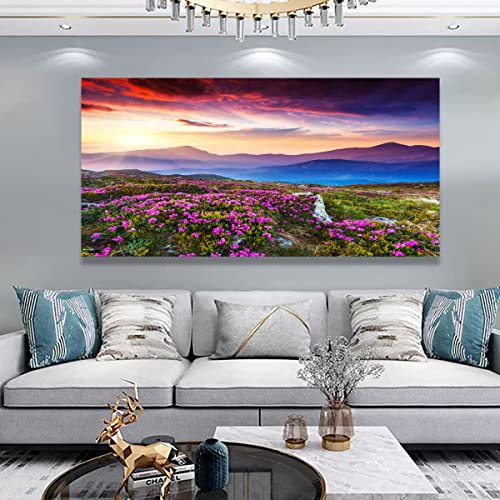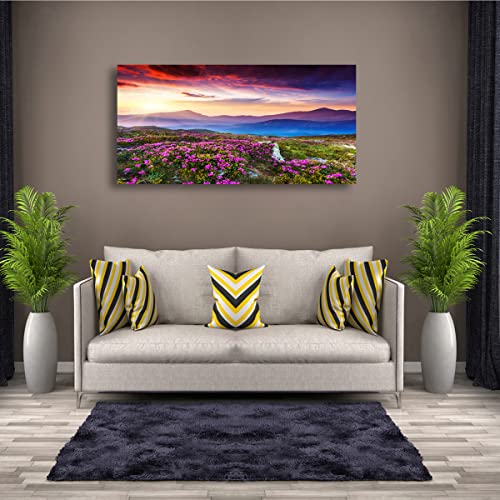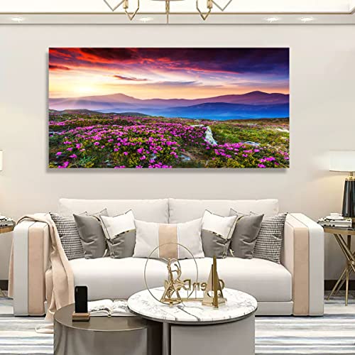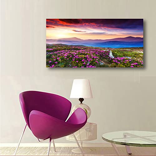 - لوحة فنية للحائط من القماش مطبوعة على شكل زهور وجبل ومناظر طبيعية، حجم الإطار: 20 بوصة × 40 بوصة × قطعة واحدة (50 سم × 100 سم × قطعة واحدة)، لوحة واحدة كبيرة الحجم بإطار خشبي جاهز للتعليق.