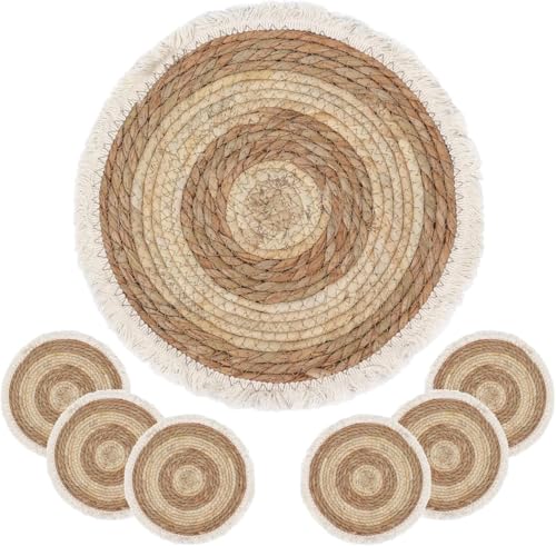 - ✅ 【تصميم طبيعي أنيق】 كوستر خوص بشراشيب ناعمة مصمم بعناية ليضيف لمسة فنية ساحرة على أي طاولة أو سطح، فهو مش مجرد قاعدة أكواب لكنه قطعة ديكور بتبرز الجمال الطبيعي والستايل البوهيمي المميز، مناسب للمطابخ وغرف الطعام وغرف المعيشة، وبيكمل شكل المكان بذوق بسيط وراقي يعكس شخصيتك. 🌿