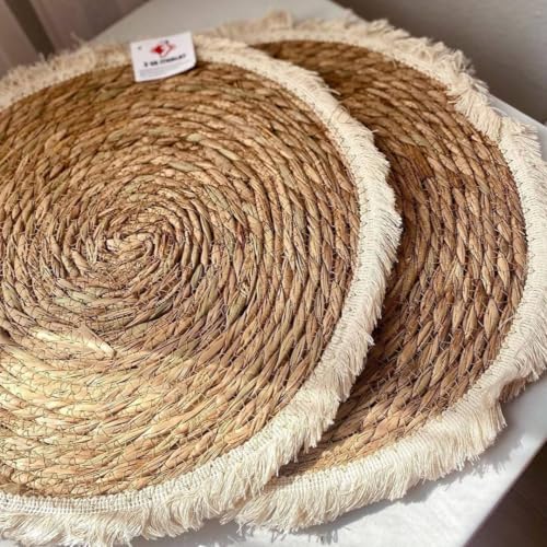 AREXOL - كوستر خوص طبيعي بشراشيب أنيق مقاس 35 سم – صناعة يدوية فاخرة لحماية الأسطح وإضافة لمسة ديكور طبيعية