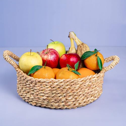 Generic - سلة فاكهة من الخوص الطبيعي مع مقابض، وعاء تخزين منسوج من الاعشاب البحرية