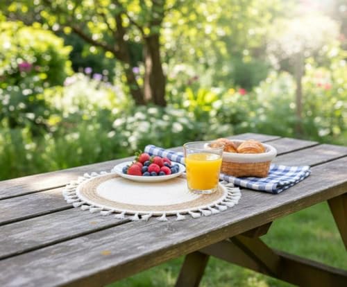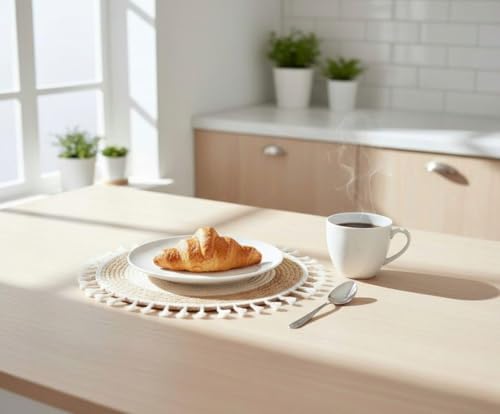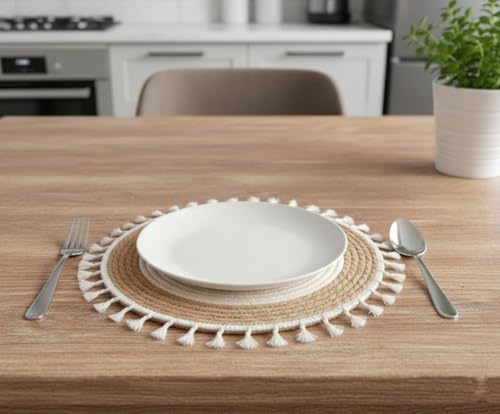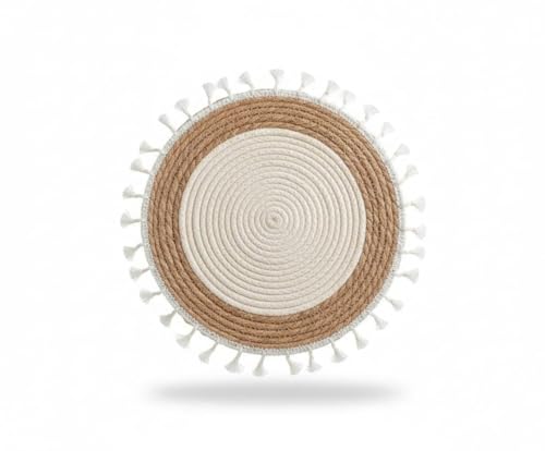 Generic - قاعدة أطباق دائرية من خوص طبيعي بشراشيب سميكة تصميم بوهو دافئ قابلة للغسيل لإضفاء لمسة ديكور طبيعية على السفرة والطاولات
