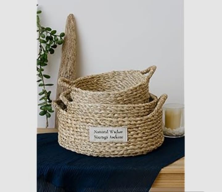 - مقابض مريحة: تتميز كل سلة بمقابض متينة من الخوص لسهولة الحمل والحمل.