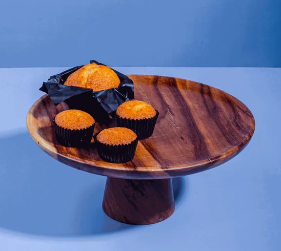 Generic - حامل كيك من الخشب الطبيعي، قاعدة دائرية مرتفعة، قطر 30 سم، مصنوع يدويا من حبيبات الخشب الغنية