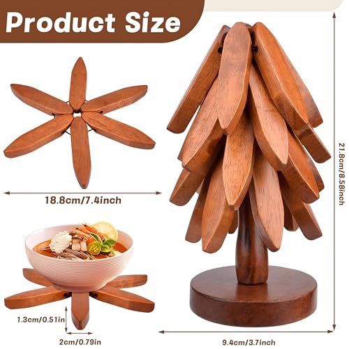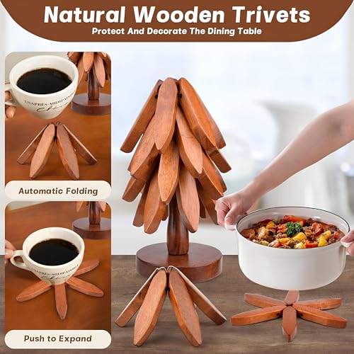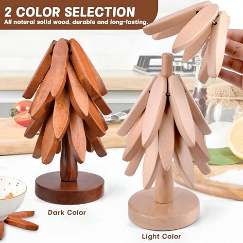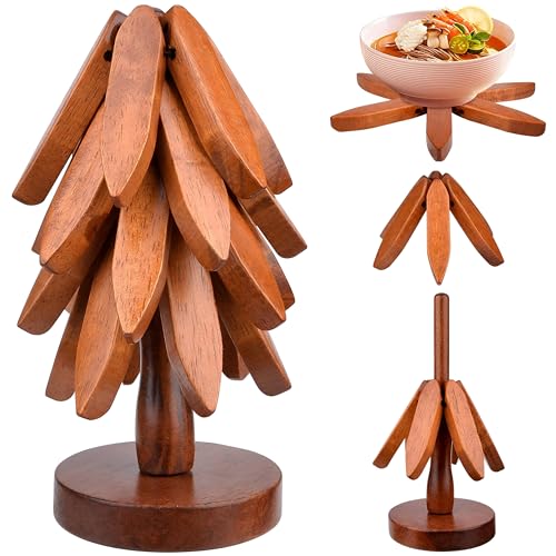 Generic - قواعد اكواب للكريسماس من الخشب الطبيعي - مجموعة من 4 ركائز قابلة للطي مع حامل مدمج، مصنوعة للحماية من الحرارة وجمال المطبخ الريفي.