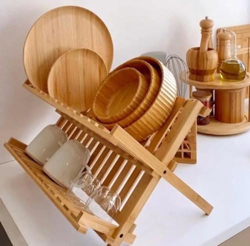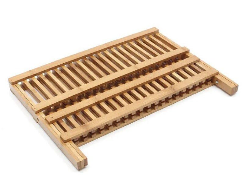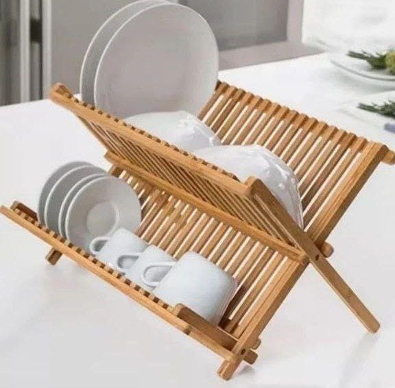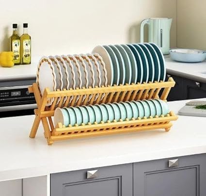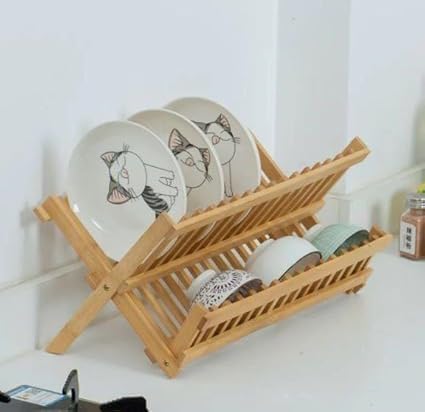 Generic - مطبقية صحون من الخشب الطبيعي مكونة من دورين لتجفيف الأواني والملاعق – متينة وعملية بتصميم يوفر المساحة للمطابخ الحديثة