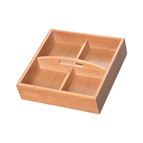 Generic - منظم خشبي طبيعي – حاوية أنيقة من البامبو مقسمة إلى 4 أقسام لتقديم المكسرات والحلويات والفواكه المجففة، مصممة لسهولة النقل، تناسب زوايا القهوة والمطابخ العصرية