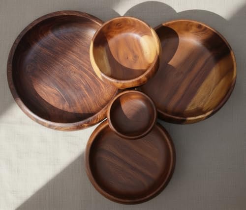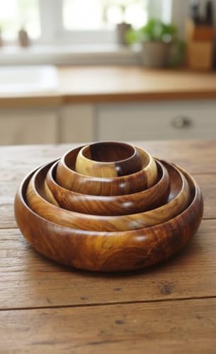 - مجموعة من 5 أوعية خشبية مصنوعة يدويًا ومنحوت بمقاسات متدرجة (10 سم، 15 سم، 20 سم، 25 سم، 30 سم)