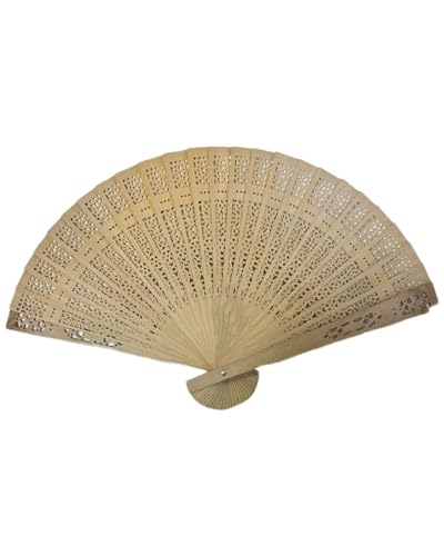 Generic - مروحة يد قابلة للطي من الخشب الطبيعي - تصميم منحوت انيق، مروحة محمولة باليد لحفلات الزفاف والحفلات ورمضان والصيف والاستخدام اليومي