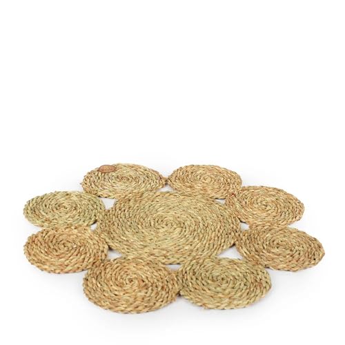 Generic - مفرش طاولة دائري من نسيج محبوك من عشب الحالفا الطبيعي، تصميم زهور، مفرش طاولة دائري 45 سم