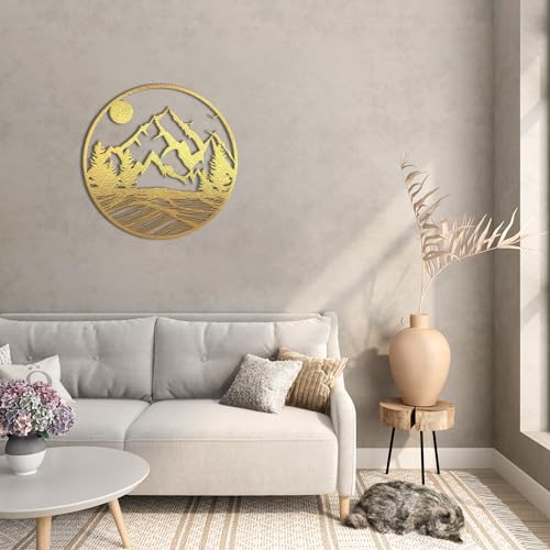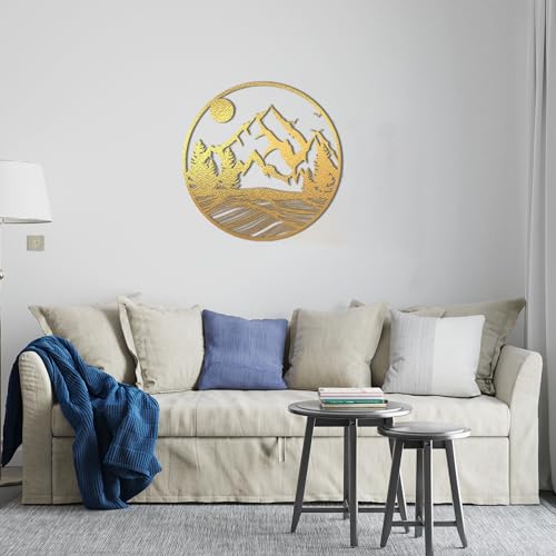 - لوحة فنية جدارية بتصميم غابة طبيعية مقاس 60×60 سم، لون ذهبي
