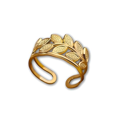 Generic - خاتم مستوحى من الطبيعة - سوار رفيع من الستانلس ستيل مع غصن زيتون وتفاصيل ورقة ذهبية، مصمم لأولئك الذين يقدرون الهدوء والذوق الرفيع.