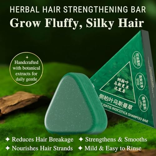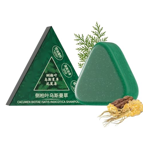 fashion mania - قالب شامبو عشب عشب طبيعي للعناية بالشعر، لوح شامبو عشب اوسما مثلث للرجال والنساء - مع زيت الجوجوبا والجينسنغ وخي شو وو وأوراق التوت، 120 غرام/4.2 اونصة