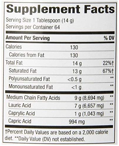 - جودة فاخرة: بكر ممتاز وغير مكرر وغير مبيض من جوز الهند غير المعدّل وراثيًا؛ بدون مذيبات (خالية من الهكسان) وغير مهدرج وبلا دهون متحولة (انظر حقائق المكملات لمحتوى الدهون)