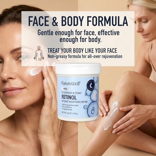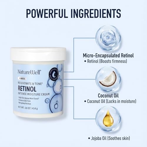 NATURE WELL - كريم ترطيب كلينيكال 2.0 ريتينول للوجه والجسم واليدين، يعزز تماسك البشرة ويحسن لونها ولا يترك بقايا مترسبة، مع مضخة، 454 جرام من ناتشور ويل