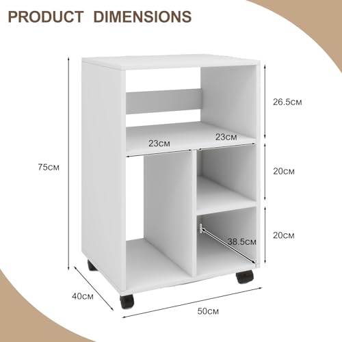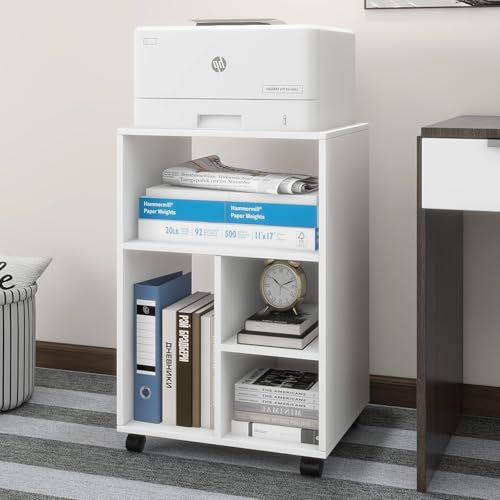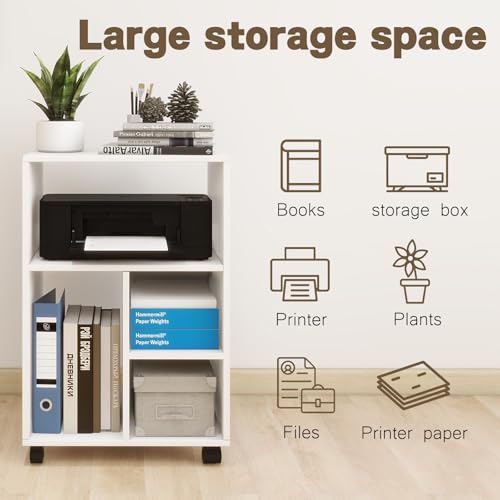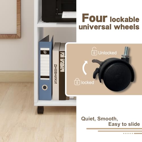 Natwind - ناتويند خزانة ملفات خشبية، خزانة ملفات عمودية متنقلة، خزانة تخزين مكتب، خزانة حامل طابعة دوارة مع رف مفتوح، حامل طابعة مع رف تخزين قابل للتعديل للمكتب المنزلي، ابيض