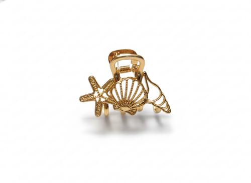 Generic - مشبك شعر ذهبي بتصميم بحري، نجمة البحر والصدف، إكسسوار شعر معدني ذهبى