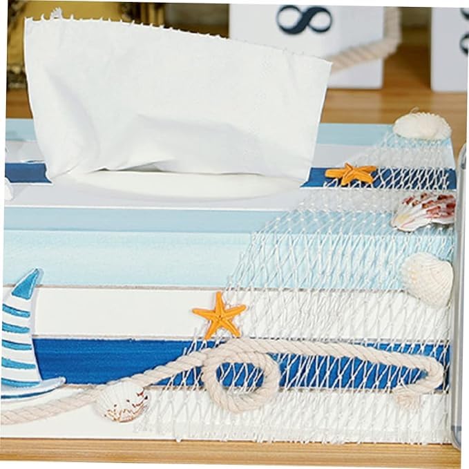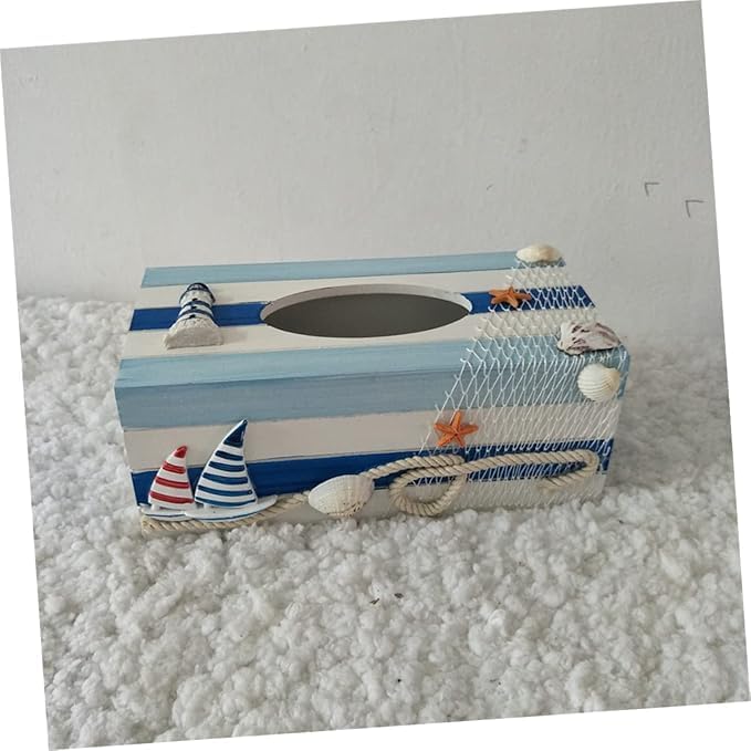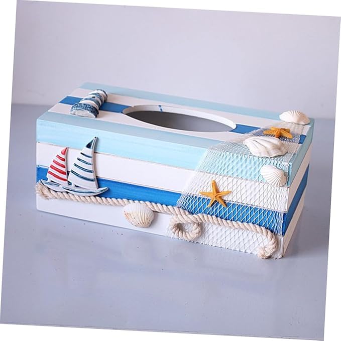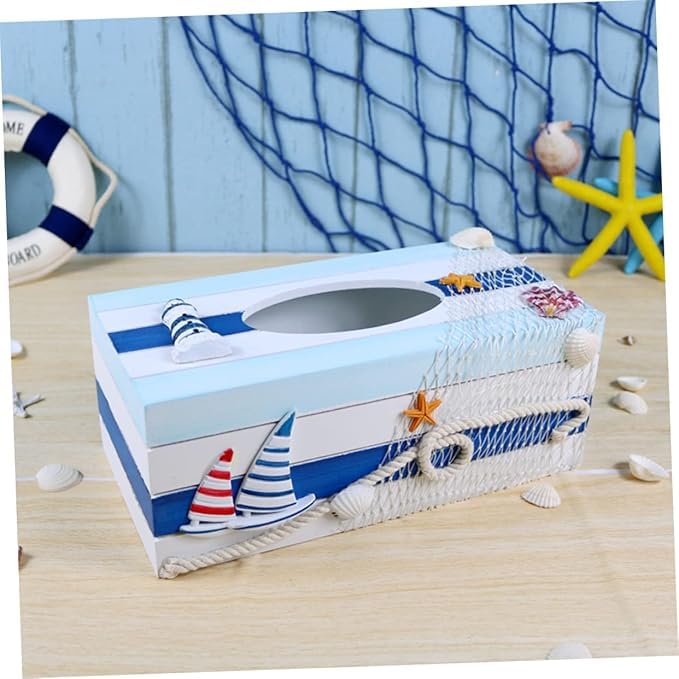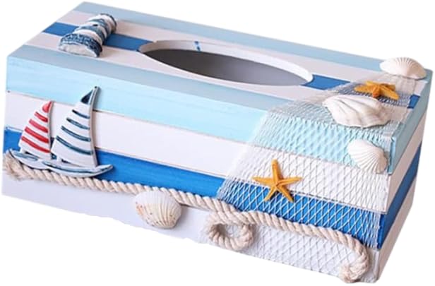Generic - غطاء علبة مناديل بتصميم بحري، حافظة تخزين خشبية بنمط شاطئ ومراكب شراعية، ديكور للحمام