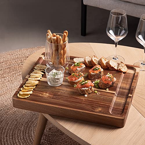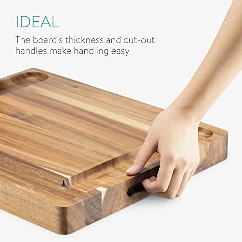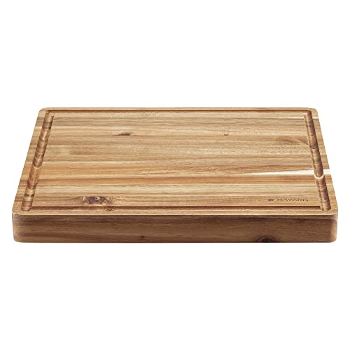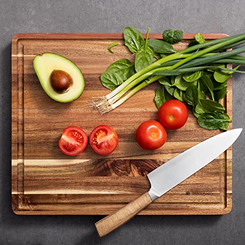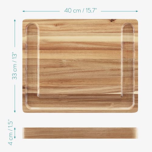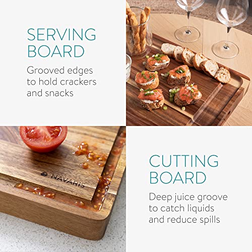Navaris - لوح تقطيع مزدوج الجوانب من خشب الأكاسيا مقاس 33 × 40 سم مع أخدود محفور لجمع للعصير من نافاريس، لوح جبن تشاركوتيري كبير للمطبخ