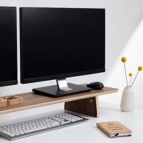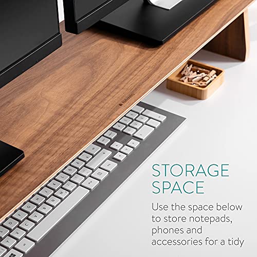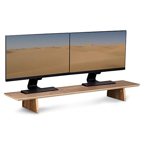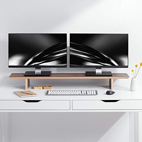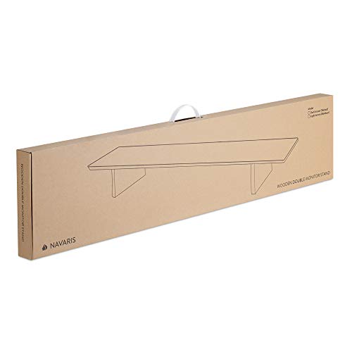 Navaris - حامل شاشة مزدوج من نافاريس، رف مكتب من الخشب الطبيعي بعرض مزدوج لحمل 2 شاشة كمبيوتر، العرض 1.09 م × العمق 23 سم × الارتفاع 12 سم، لون الجوز