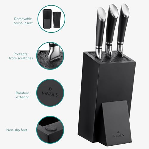 Navaris - نافاريس حامل سكاكين عالمي بدون سكاكين - حامل سكاكين مصنوع من الخيزران - حامل سكاكين مع فرشاة - مناسب لجميع مقاسات سكاكين المطبخ وسكاكين الطهاة