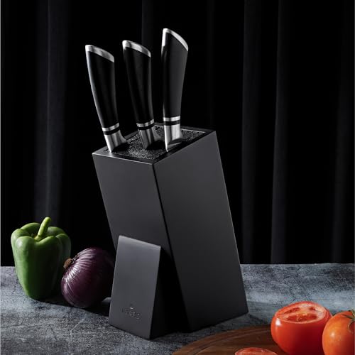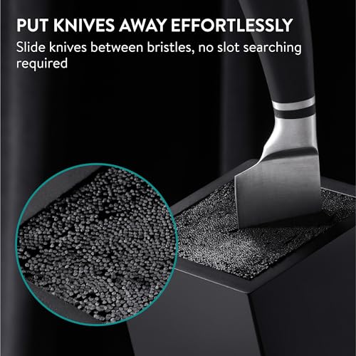 - عالمي: بفضل الشعيرات البلاستيكية، يتناسب أي سكين بحجم بسلاسة مع كتلة السكاكين اليدوية هذه. على سبيل المثال سكين الخبز وسكين اللحم وسكين الشيف وسكين صغير لتقشير البطاطس.