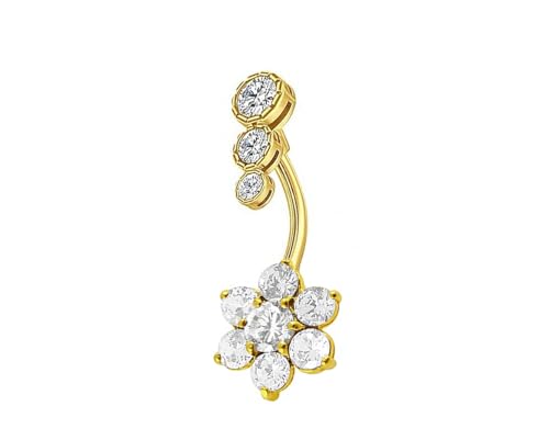 BIJOUX BEAUTIQUE - قضيب منحني ثلاثي الاطار بازرار البطن بتصميم زهرة عنقودية علوية - ابيض وذهبي