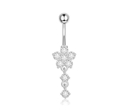 BIJOUX BEAUTIQUE - مجوهرات ثقب سرة البطن على شكل زهرة من الاحجار الكريمة المنحنية - ابيض وفضي