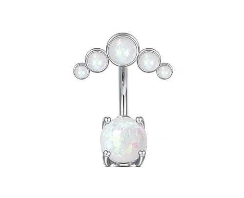 BIJOUX BEAUTIQUE - مجوهرات ثقب سرة عائمة على شكل قضيب منحني من الاوبال - فضي