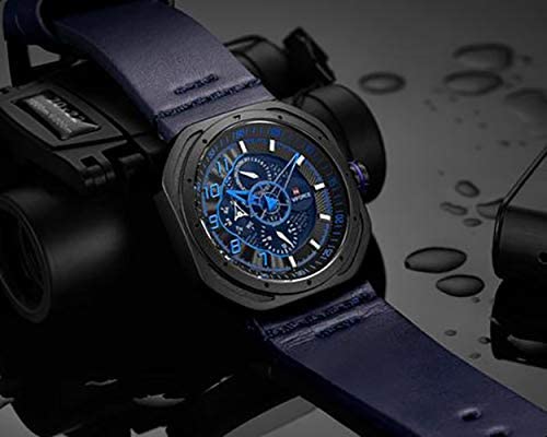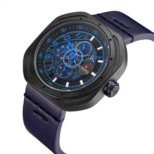 Naviforce - ساعة يد انالوج دائرية بسوار جلد فاخر للرجال من نافي فورس، لون كحلي، موديل 9141L B-BE-BE