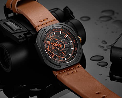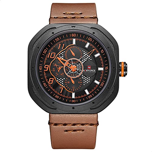 Naviforce - ساعة انالوج بعقارب دائرية من الجلد للرجال من نافي فورس 9141L B-O-L.BN - بني