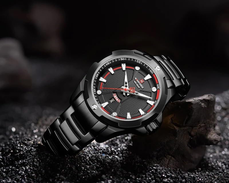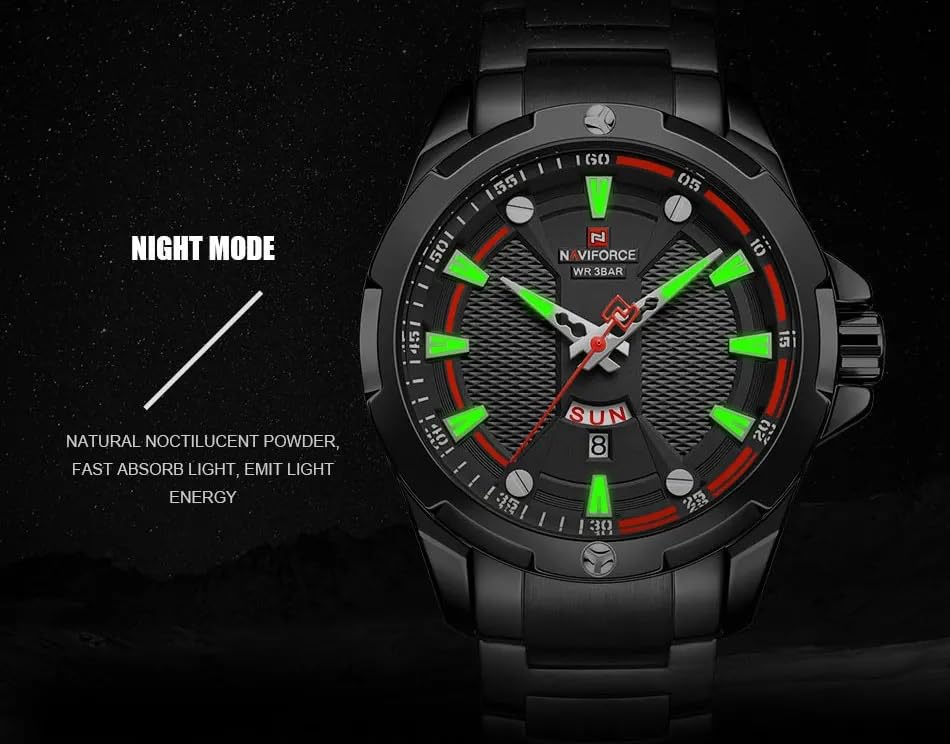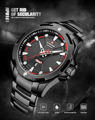 Naviforce - ساعة يد 9161 B-B للرجال من الفولاذ المقاوم للصدأ مقاومة للماء من نافي فورس، ساعة كاجوال عصرية متعددة الوظائف بعرض أنالوج وحركة كوارتز