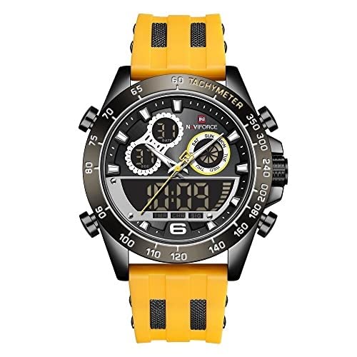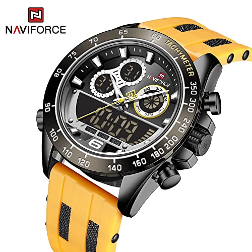 Naviforce - ساعة رياضية ثنائية العرض ومتعددة الوظائف بي بي واي ديليشيوس 9188T للرجال من نافي فورس، تصميم مقاوم للماء حتى 3 ايه تي ام وسوار من البولي يوريثين المقاوم للحرارة