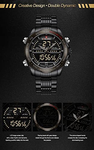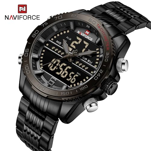 Naviforce - ساعة يد عصرية اصلية من الستانلس ستيل للاعمال للرجال من نافي فورس 9195S BBB