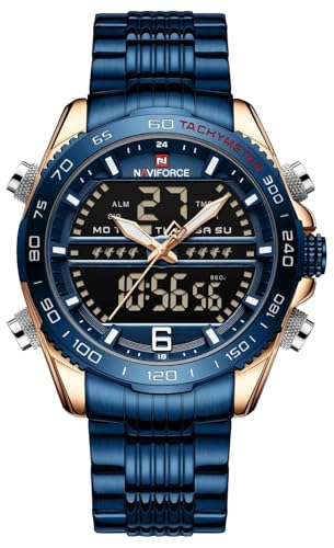 Naviforce - ساعة يد عصرية اصلية من الستانلس ستيل للاعمال للرجال من نافي فورس 9195S BBB