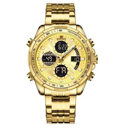 Naviforce - نافي فورس ساعة انيقة للرجال بسوار من الستانلس ستيل بلون ذهبي/ذهبي 9197S